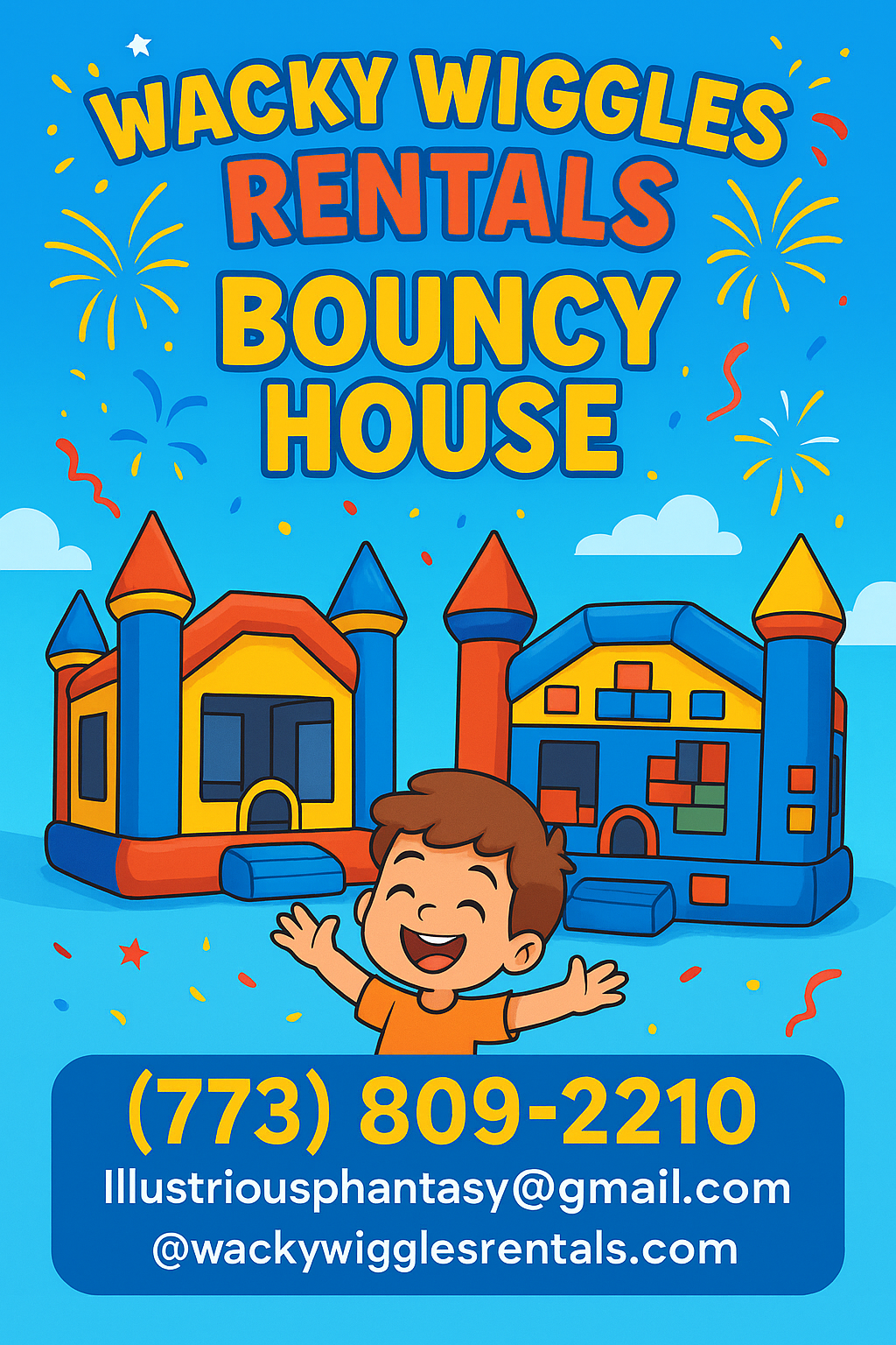 Hi, Iโm Edwin Torres, the proud owner of Wacky Wiggles Rentals, serving the vibrant communities of Chicago, IL. With over one year of hands-on experience in the inflatable rental industry, Iโve built this business on a foundation of fun, safety, and outstanding customer service. Wacky Wiggles Rentals was born from a desire to bring excitement and energy to every celebrationโfrom backyard birthdays to school events, block parties, and more. I personally ensure that each bounce house and inflatable is thoroughly cleaned, inspected, and delivered on time, every time. My goal is to provide a hassle-free experience so you can focus on creating unforgettable memories with your family and guests. At Wacky Wiggles Rentals, your party is my priority. I look forward to helping you make your next event one to remember!